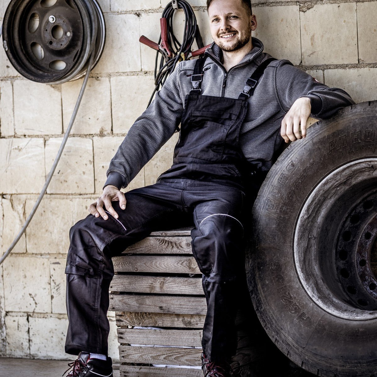 La salopette NITRAS MOTION TEX LIGHT en noir élégant (code couleur : 1000) offre une sensation exceptionnellement légère et respirante avec seulement 245 g/m². La taille extensible, la coupe régulière et les poignets élastiques assurent un confort et une liberté de mouvement optimaux - idéal pour les longues journées de travail. Grâce à de nombreux renforts au niveau des poches extérieures des jambes, des genoux, du dos et de la bavette, la salopette est particulièrement robuste et résistante. Des détails pratiques tels qu'une poche cuisse à rabat, une poche mètre avec poche plaquée, des poches genoux pour rembourrage (avec insertion par le bas), une boucle marteau et des fermetures à clip robustes font de cette salopette de travail le compagnon idéal. Les éléments réfléchissants augmentent la visibilité et donc la sécurité dans de mauvaises conditions d'éclairage. La salopette est certifiée selon OEKO-TEX STANDARD 100® et est disponible dans de nombreuses tailles.